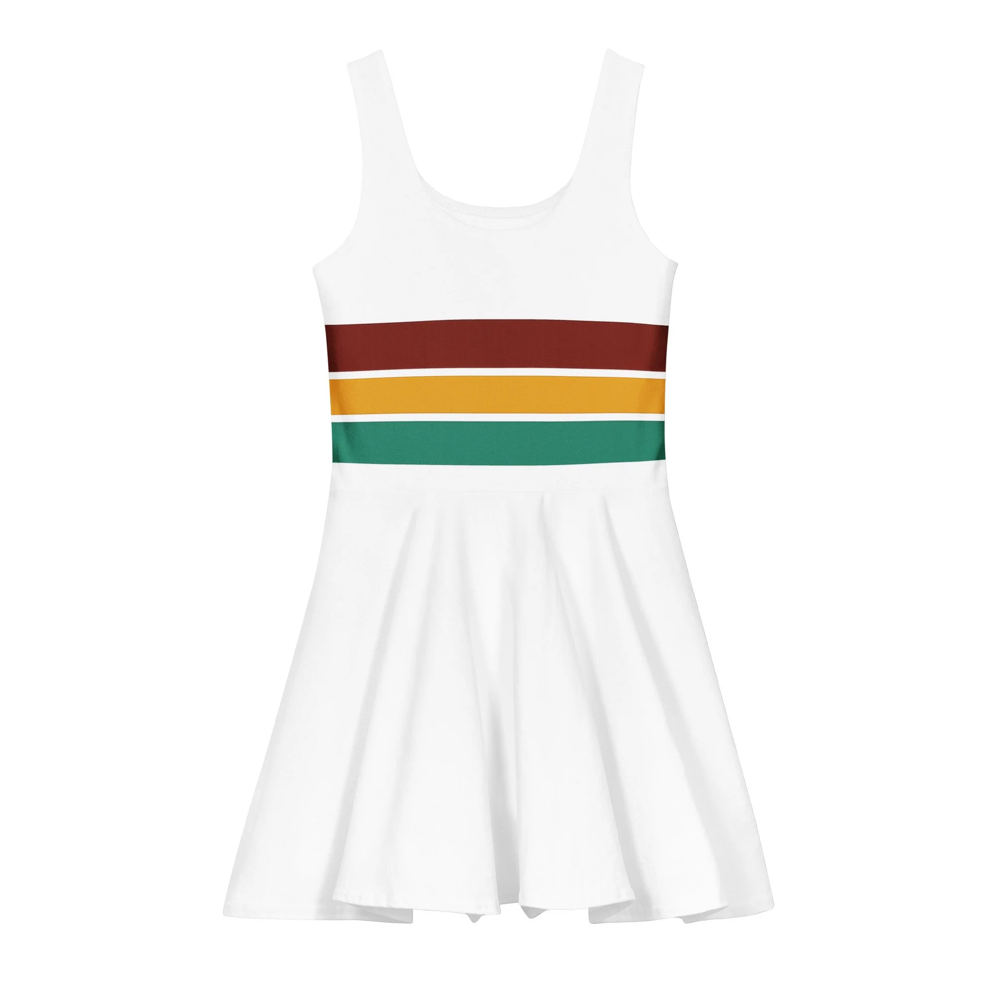 • Mid-thigh length flared skirt